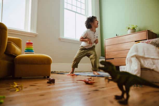 Turn your living room into a prehistoric playground! These music and movement activities help boost gross motor skills and imagination: