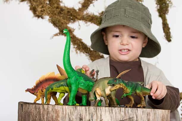 Encourage sorting and classification by having your child organize dinosaur toys by: